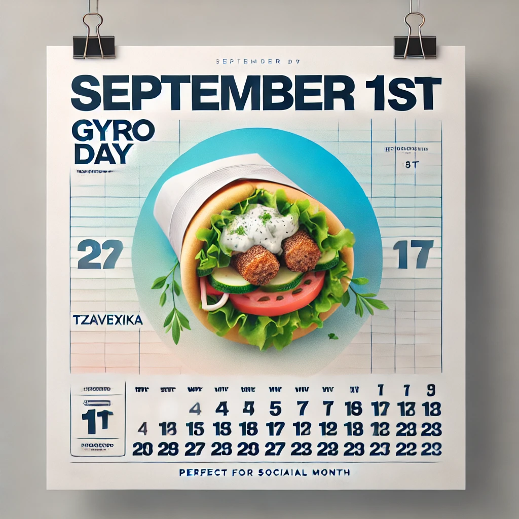 1 September 2024Published by Michael_cco on 1 September 2024Categories - - Celebration Days #Gyro#Lamb#Pita#Tzatziki#GreekCuisine GreekCuisine Gyro Lamb Pita Sunday TzatzikiGyro Day