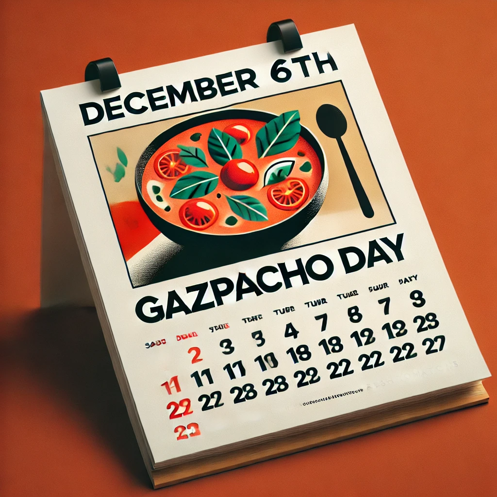6 December 2024Published by Michael_cco on 6 December 2024Categories - - Celebration Days #Vegetables#Soup#Salades Friday Salades Soup VegetablesGazpacho Day